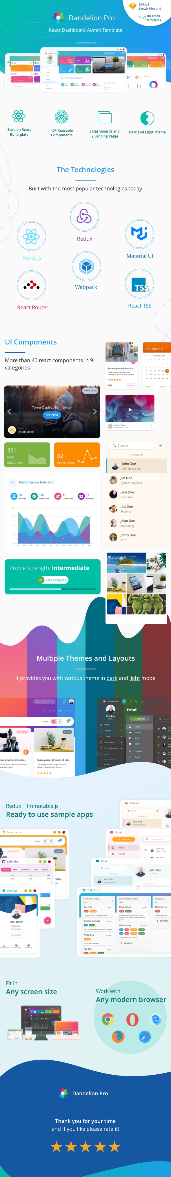 Dandelion Pro是一个基于React Boilerplate的完整 ReactJS 管理模板。它为您提供干净的现代设计和高性能反应应用程序,具有遵循材料设计概念的各种颜色主题。