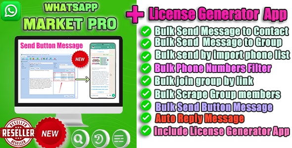 ❤️Whatsapp 批量发送工具 | 群组发送 | 自动回复(Whatsapp Market Pro)+自动回复是一个强大的工具,可以让您向联系人发送批量消息、加入群组、从群组中提取成员、自动回复消息等。它具有一系列功能,可以轻松使用和管理您的联系人和消息。