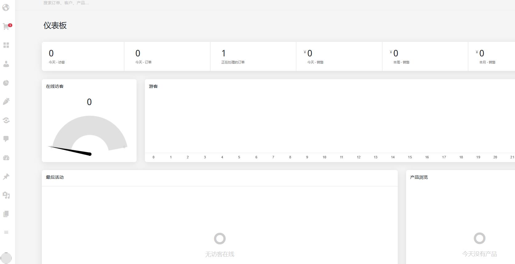 -完全专注于电子商务的全新界面 -在线访问者数量 -每小时,每周,每月访问者的数量 -跟踪在线访问者的活动 -跟踪白天查看过的产品 -转换率 -仪表板的小部件支持 -A精美的界面可以管理订单,产品,客户,优惠券,评论和报告。 -随时随地全球搜索订单,产品和客户 -主题支持可让您避免无聊的界面 -通知中心 -选择面板上将显示的菜单项
