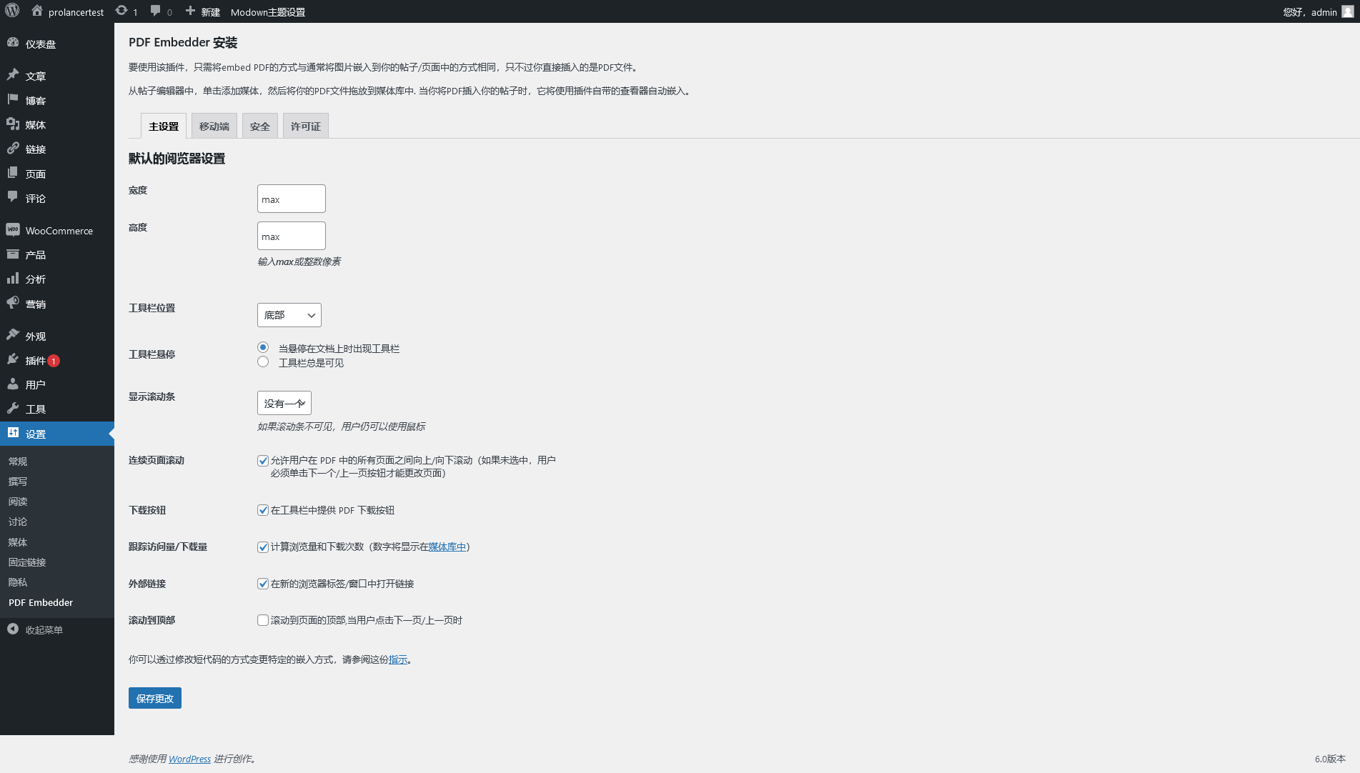 您可以通过设置 -> PDF 嵌入器更改默认外观 – 例如宽度和工具栏位置/外观。
