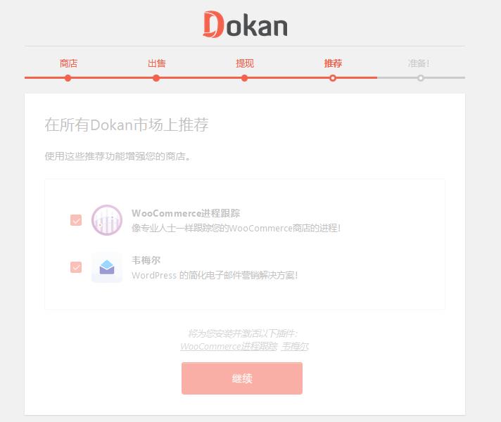 1、下载安装Dokan Pro并启用,根据提示安装Dokan Lite,同时按提示安装好所有的插件。
