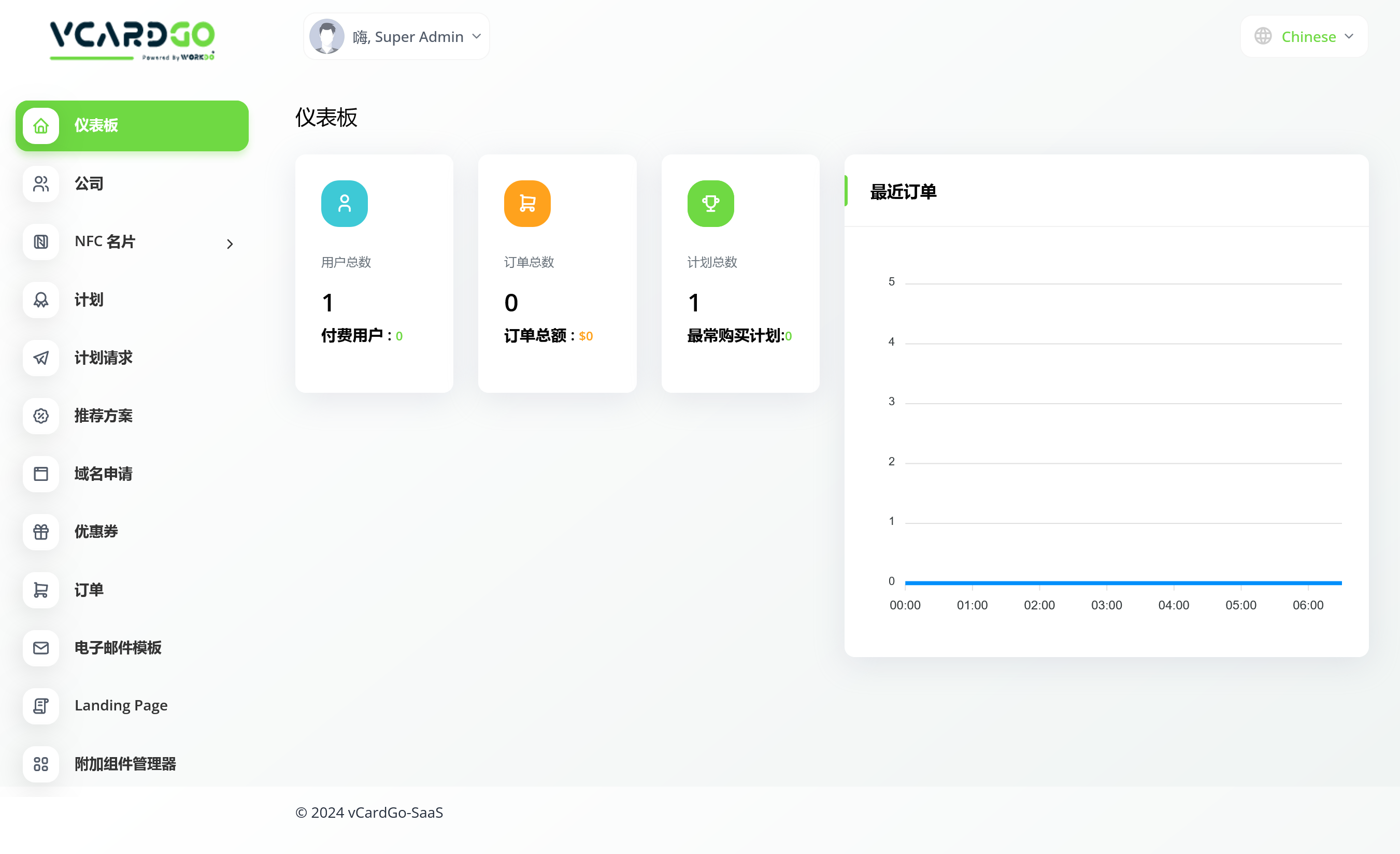 2024.04.22 更新到vCardGo SaaS v5.4,并对后台进行了汉化,汉化率为95%,请参考汉化包下面的安装说明。