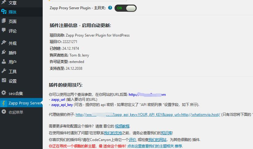 Zapp Proxy Server插件主要用于WordPress,Zapp代理服务器插件是一个功能强大的工具,可在WordPress主机上创建个人代理服务器。本站对Zapp Proxy Server进行了汉化并破解。