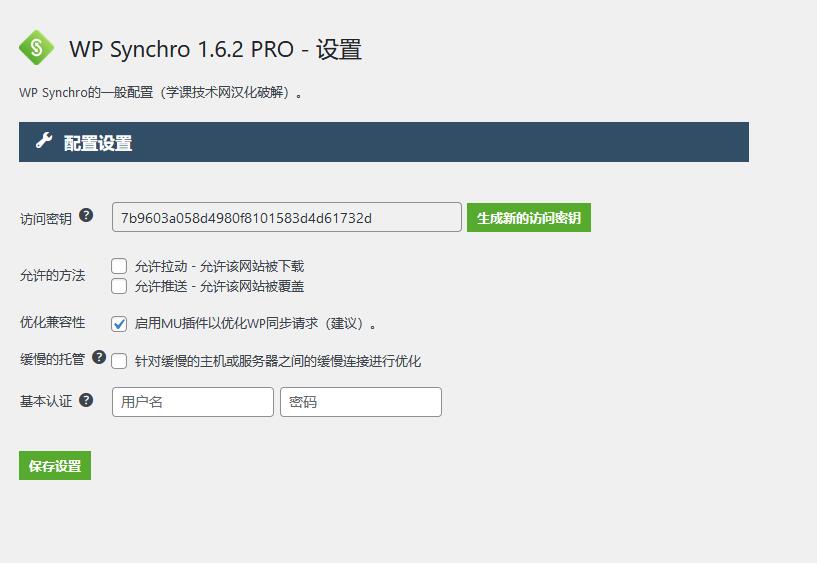 下载汉化文件“wpsynchro-zh_CN.mo”拷贝到“\wp-content\plugins\wpsynchro\languages”目录下即可完成汉化。