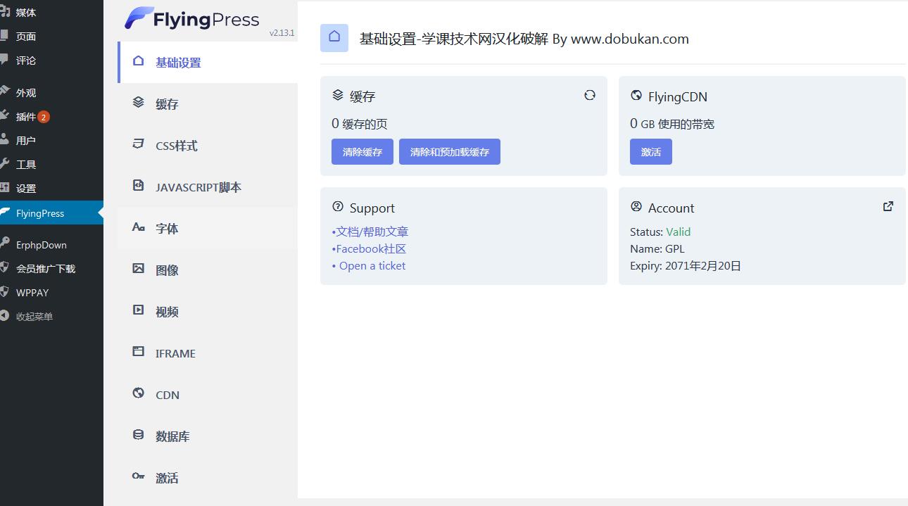 下载FlyingPress(注意FlyingPress汉化无限制版包更新66元,15元为英文无限制版):