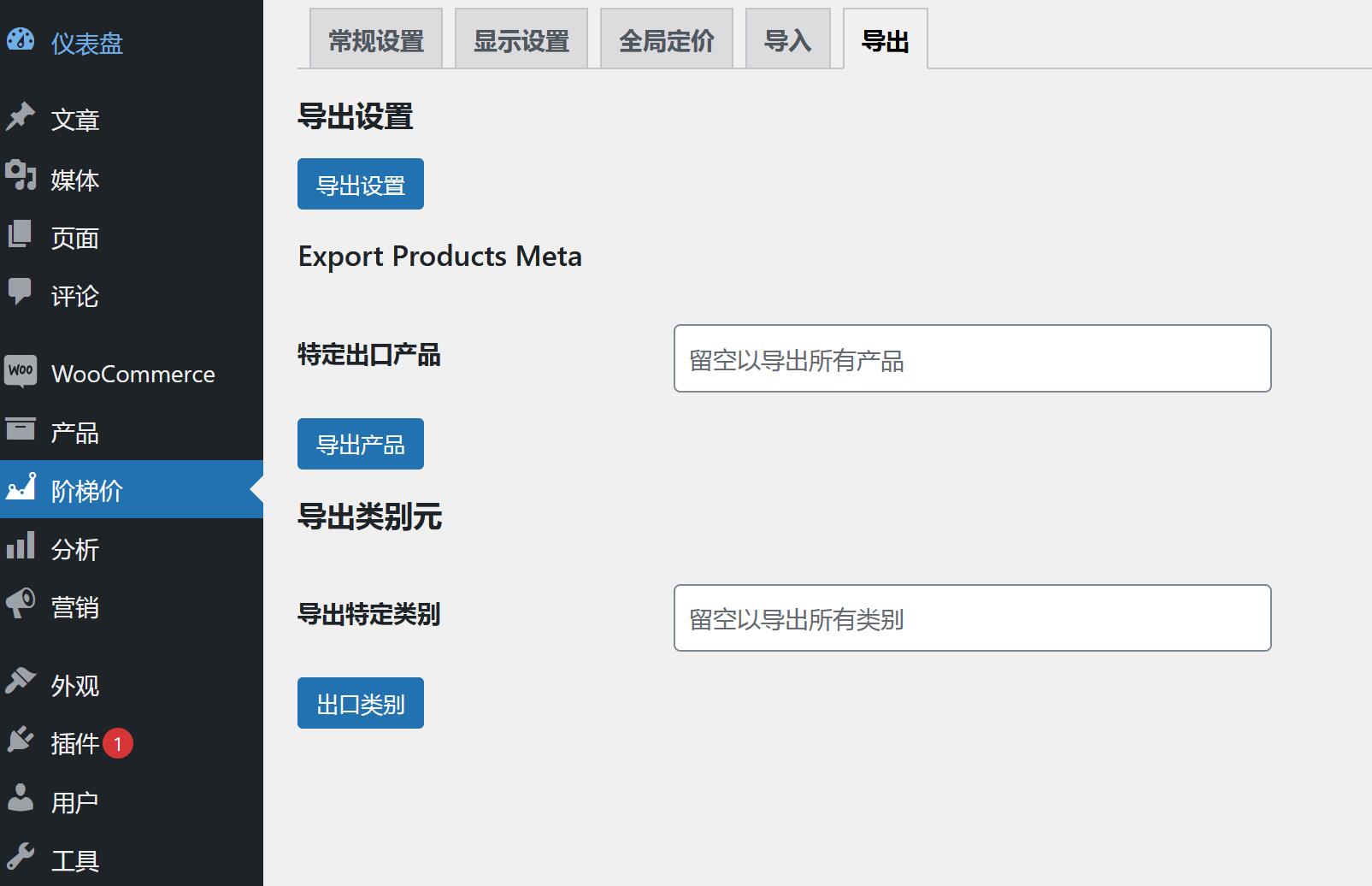 允许在产品、类别和全局级别导入/导出插件的设置。