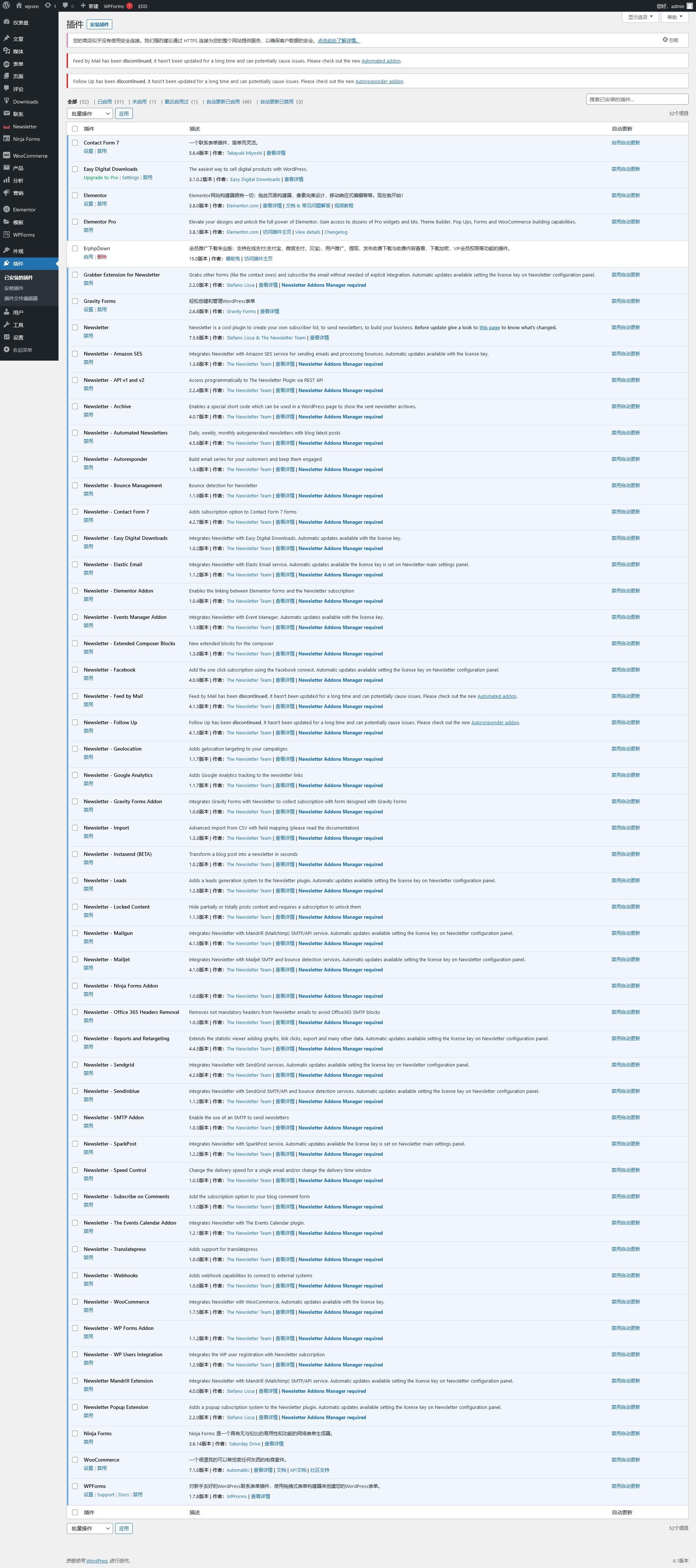 2、如果你下载的是newsletter v7.5.6-+所有依赖插件.zip,请将压缩包内所有的目录上传到\wp-content\plugins目录下然后全部启用即可!(这打包了newsletter所有的插件以及他依赖的所有插件),以下是插件下载清单及版本号截图。