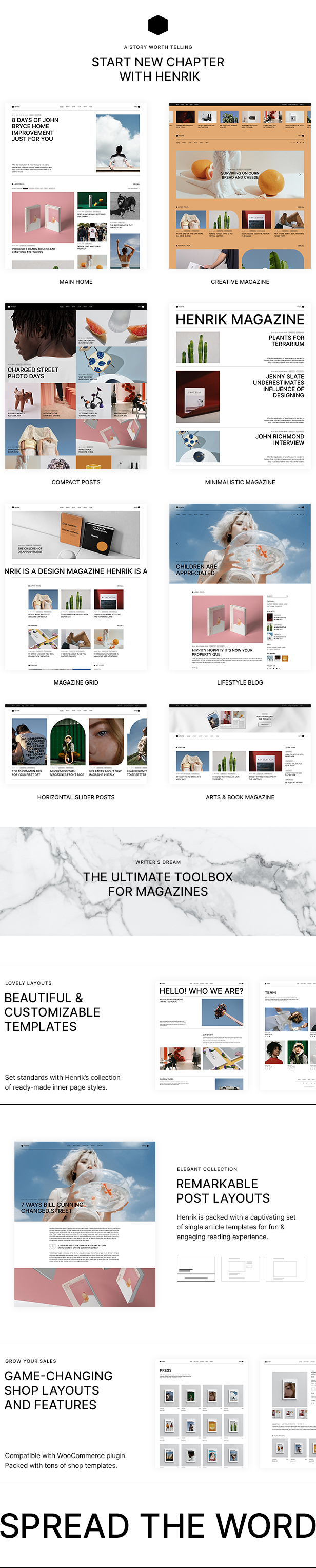 为难忘的博客体验做好准备!认识另一个数字杂志主题Henrik。这是一款极简但富有创意、功能强大且易于使用的应用程序。这个创意工具箱包含独特的博客布局和文章模板集合,因此您可以轻松启动您的新闻门户、视频博客、时尚杂志或任何其他创意杂志。无论您是想发表社论、分享视频新闻,还是撰写您的第一个生活方式博客,Henrik 都能满足您的需求!所以不要再等了——今天带上 Henrik 告诉全班同学。