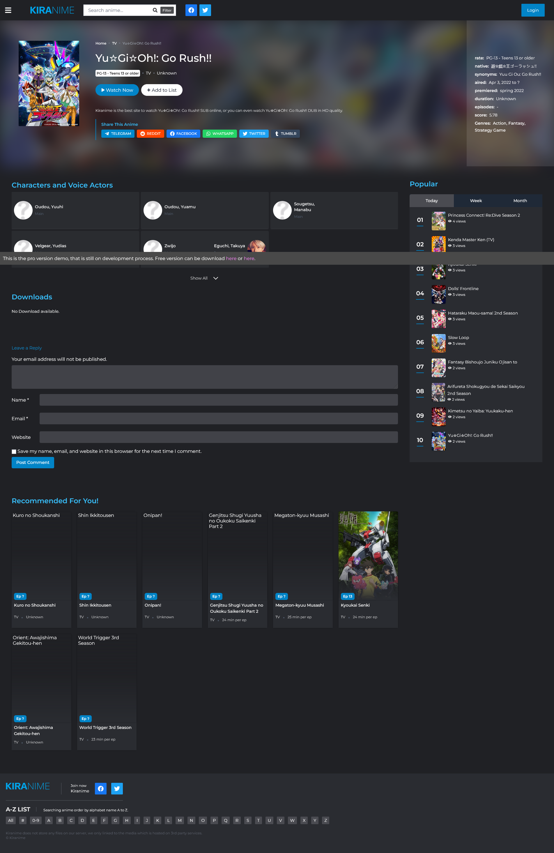 Kiranime – 动漫/系列流式 WordPress 主题是 zoro.to 克隆,我自己创建的。也许在我没有注意到的情况下出现了许多错误,但我非常有信心分享我的主题。