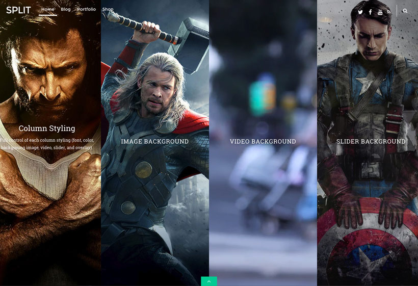 Split 是一个完全响应的 WordPress 主题,它具有拆分滚动功能,允许您在从一行滚动到下一行时创建很酷的拆分效果。我们构建了此功能,允许您使用这种视觉上吸引人的效果在您网站的任何行上显示任何内容(全角视频、图像、文本)。我们还包括了一对帖子布局,没有侧边栏(半页)和侧边栏(全角特征图像)。这些布局允许您更改显示投资组合或博客页面的方式。除此之外,我们还为这个主题添加了 9 种不同颜色的皮肤、8 种示例页面布局、页眉和页脚可见性选项、无限滚动和砖石布局。访问演示看看您可以使用拆分构建什么!
