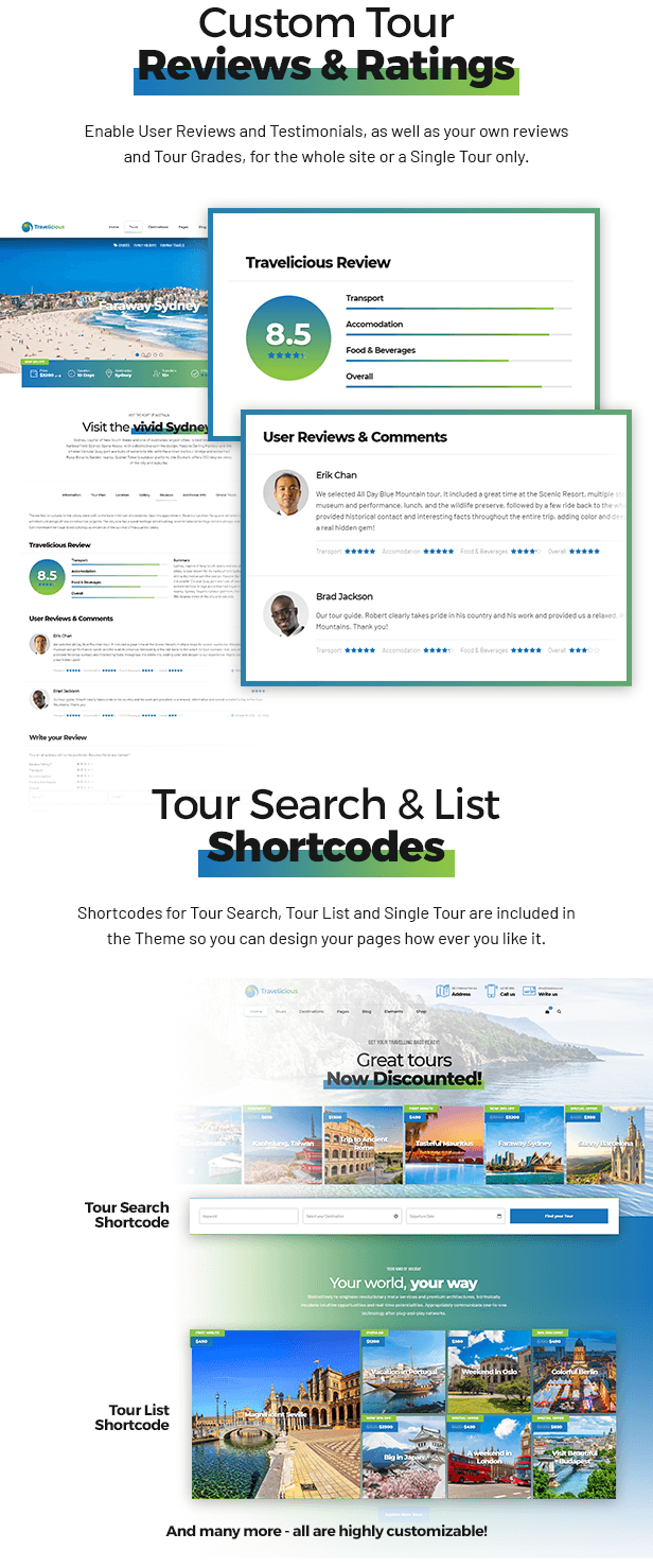 旅游、旅行社和旅行社的 Travelicious WordPress 主题。这个WP主题是专门为满足旅游经营者和旅行社的需求而设计的,以展示他们的大量报价,并使客户更容易搜索和阅读代理商的报价。