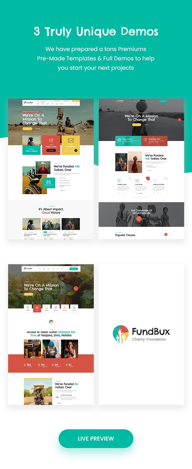 使用我们的演示布局或使用页面 Fundbux 和功能丰富的后端创建您自己的视觉不同体验。