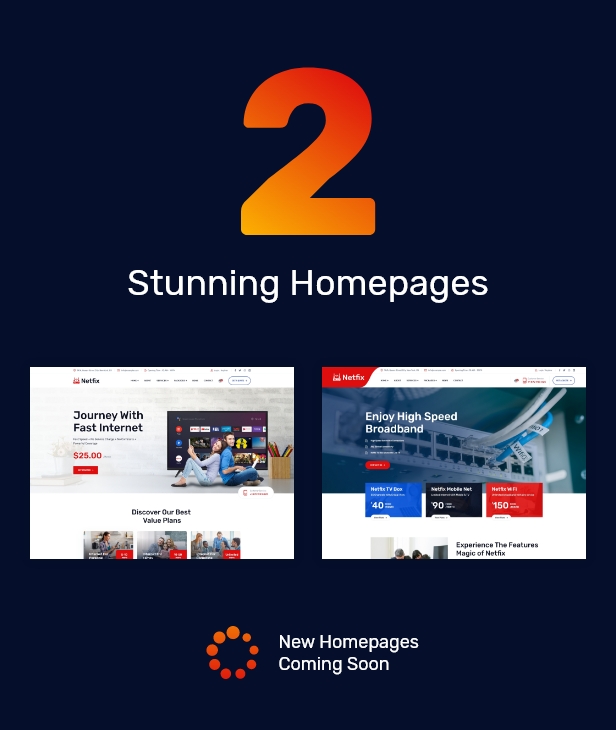 Netfix 是宽带和互联网服务 WordPress 主题,适用于您的宽带和 ISP 商业网站。这可用于任何基于互联网的服务公司,包括宽带和 ISP、VOIP、IPTV、电信、技术、数字代理、IT 解决方案、VPS 和专用根服务器、计算机网络等。该模板基于 Bootstrap 5.x , Sass 与启用 AJAX 的联系表单提交。