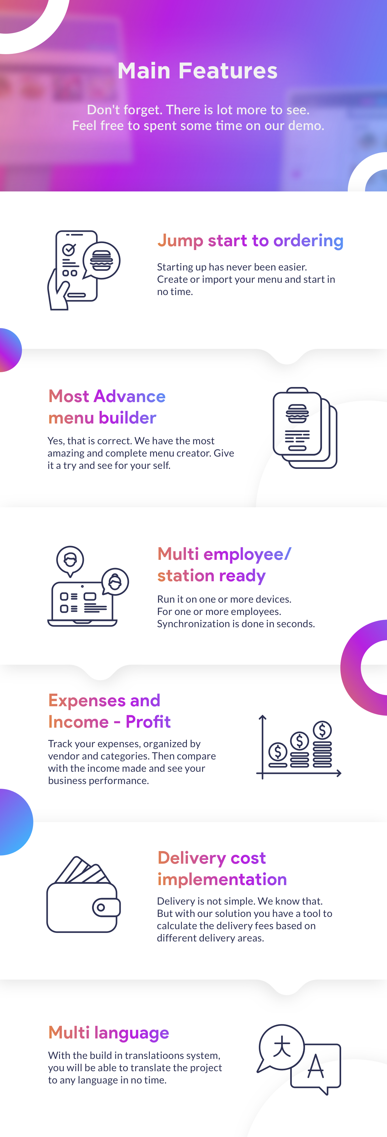 便利的POS系统。Lion POS基于任何餐厅或酒吧都可以轻松使用的智能界面。凭借这种灵活性,您可以自定义 Lion POS 以满足您的需求。如此简单却如此强大。订购从未如此简单。具有 Dine In – Pick-Up 和 Delivery 功能,这是满足现代餐厅和酒吧需求的一体化解决方案。