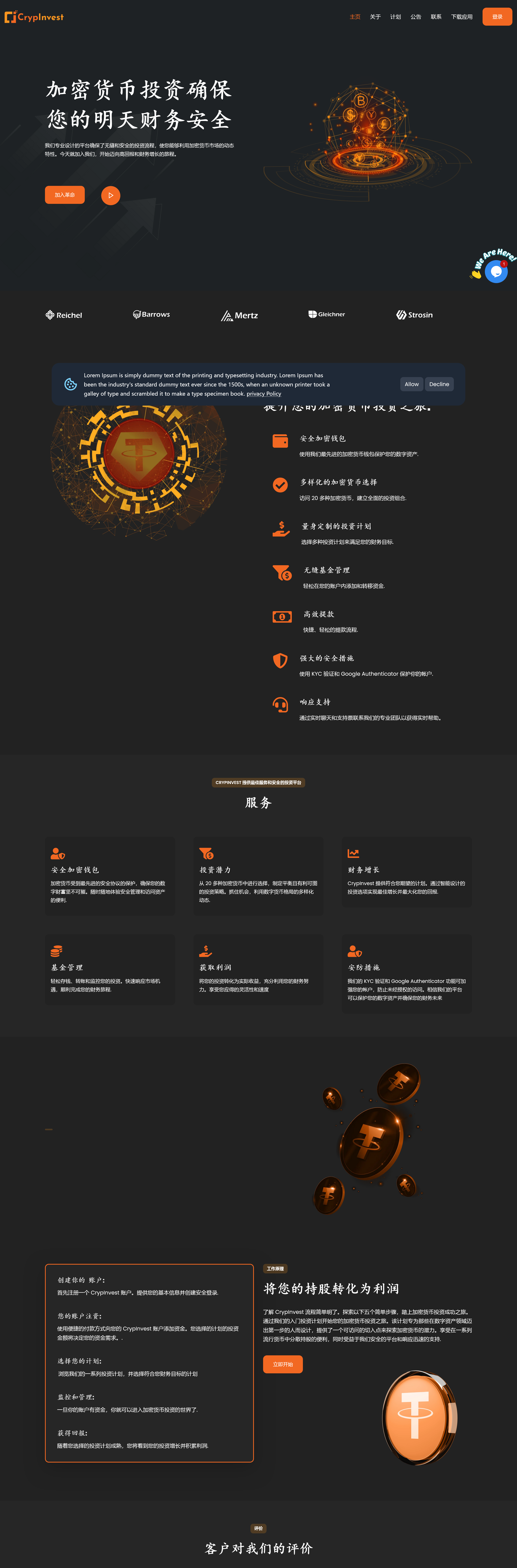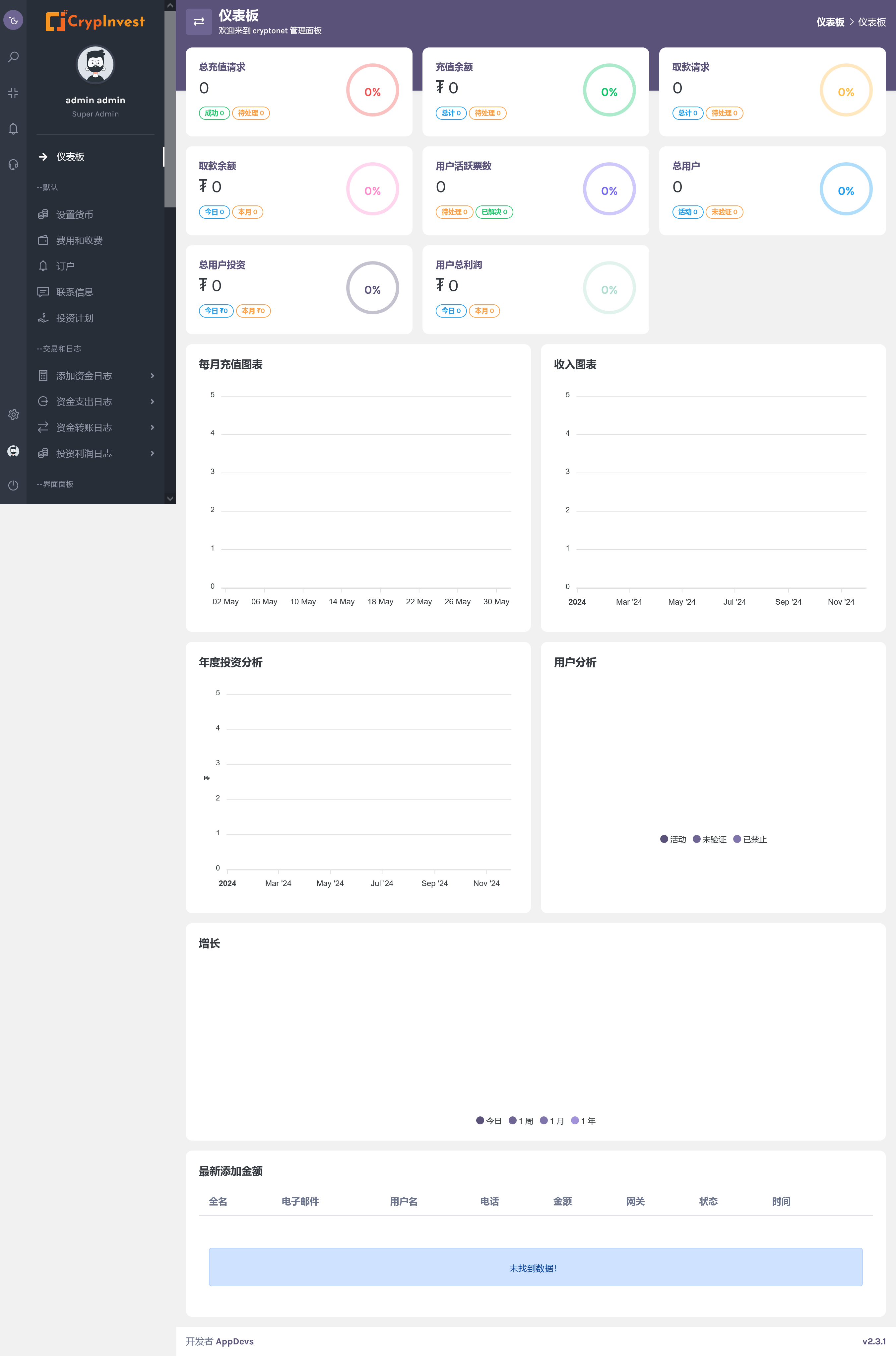 CrypInvest – 您完整的加密货币投资解决方案。可通过 Android 和 iOS 应用程序、用户友好的网站和直观的管理面板访问,CrypInvest 提供高级功能:安全的加密钱包、20 多种不同的加密货币、个性化的投资计划、推荐系统、多层次、轻松的基金管理、快速提款以及通过 KYC 和 Google Authenticator 实现的强大安全性。它有一个响应迅速的支持系统,具有实时聊天和支持票证,可随时为您的客户提供帮助。我们承诺以经济实惠的价格提供卓越的软件解决方案,使您能够利用机会并在这个充满活力的行业中脱颖而出。抓住机会,利用 CrypInvest 将普通运营提升为非凡成就。